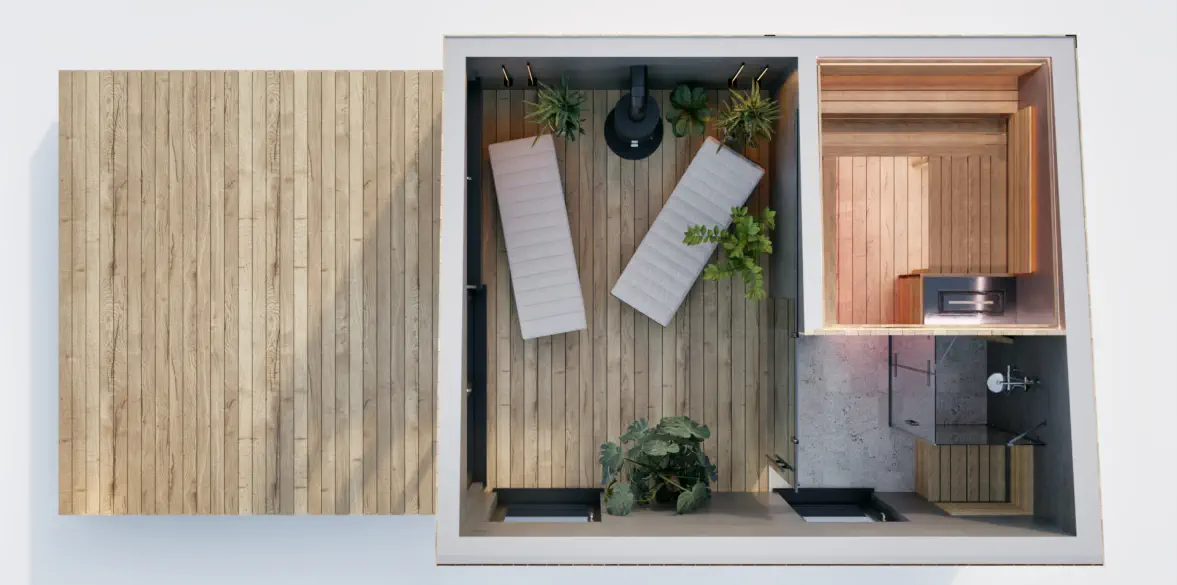 Sporenreine Luft, Wärmt optional mit Infrarot-C Strahlung und ermöglicht eine Duft-Therapie im eigenen Wellnessbereich.