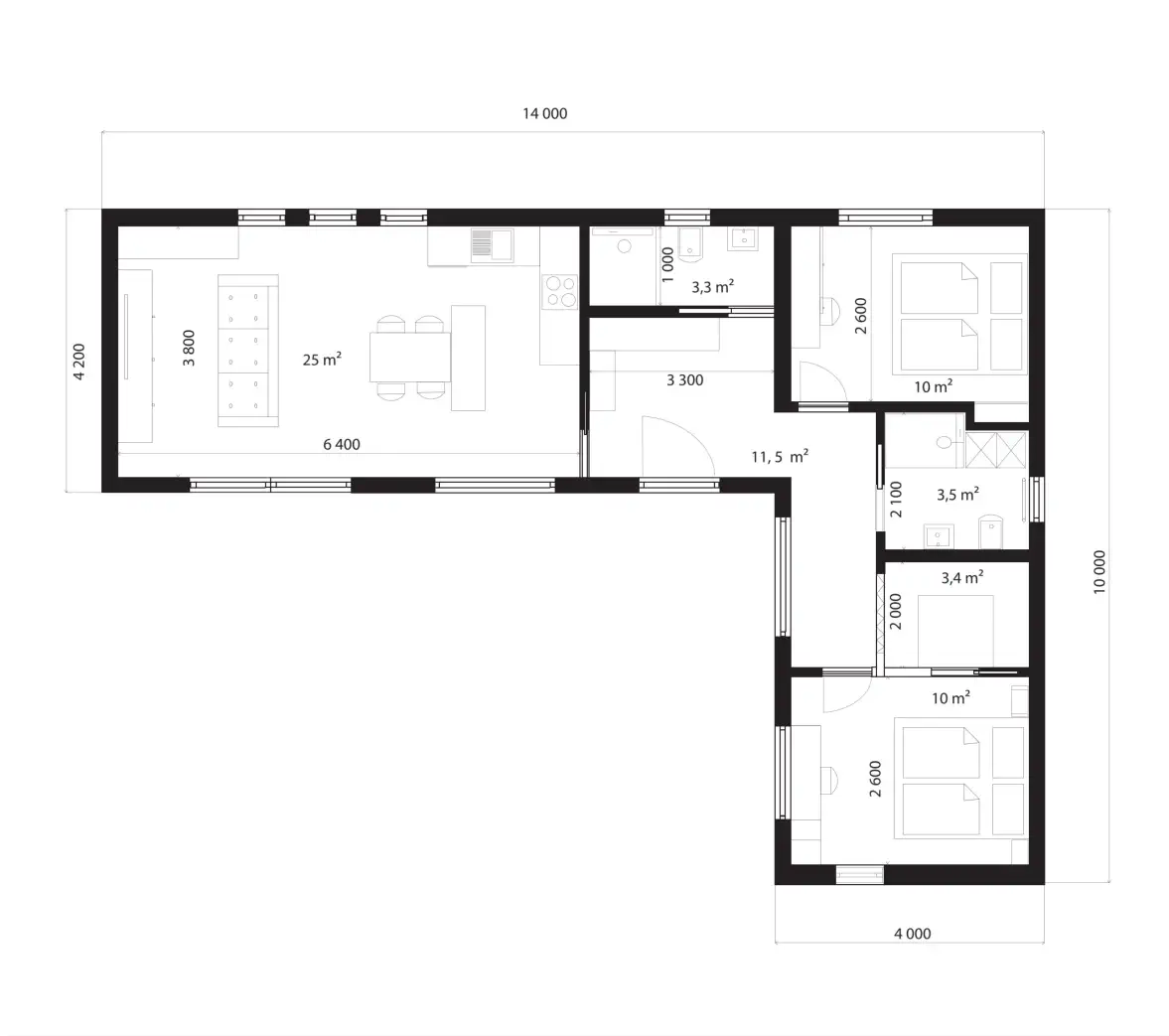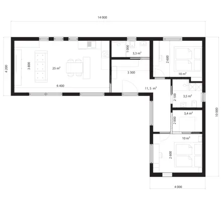 verbaute Fläche: 14,0x10,0m